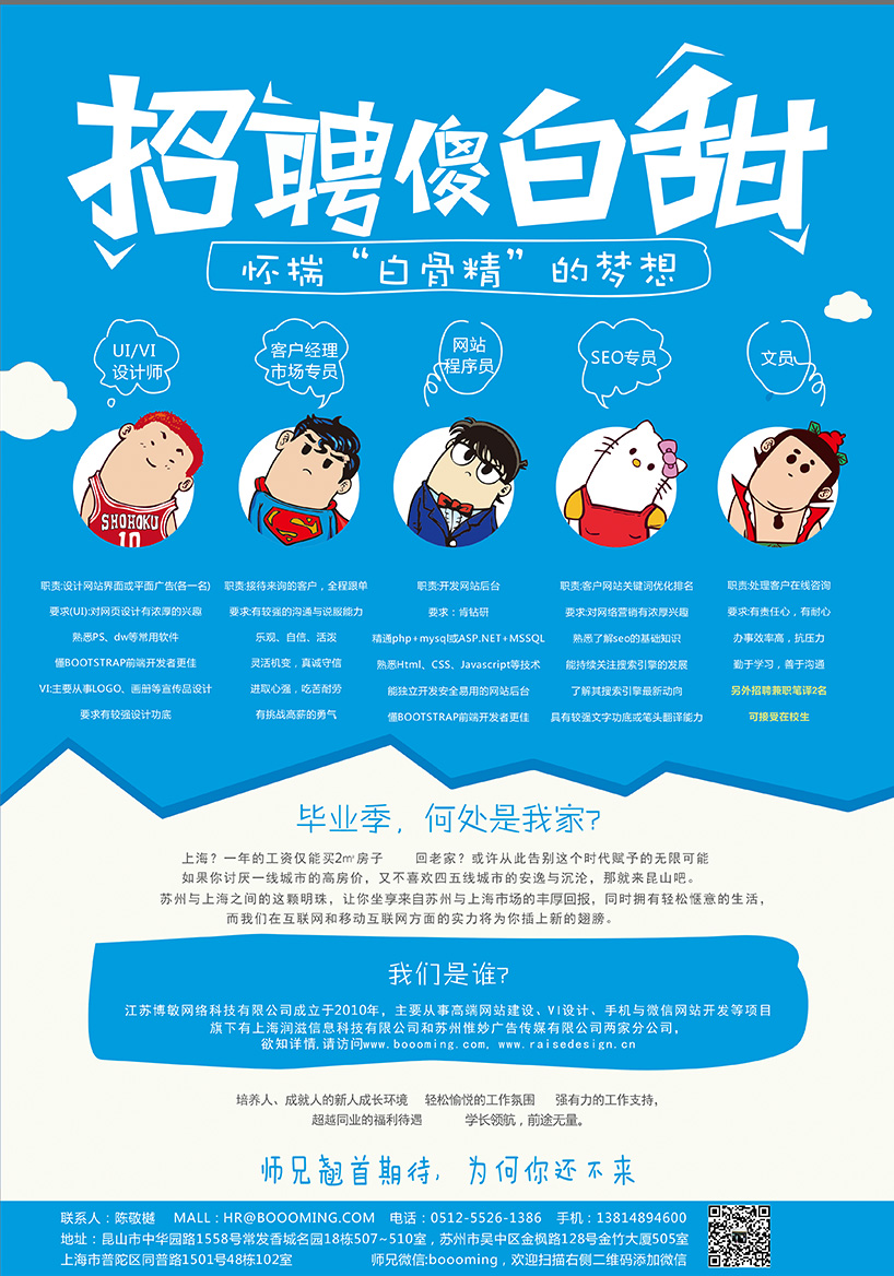 要求:對網(wǎng)頁設計有濃厚的興趣,熟悉PS等常用設計軟件,能追蹤設計前沿,追求極致的表現(xiàn)方式,懂BOOTSTRAP前端開發(fā)者更佳。