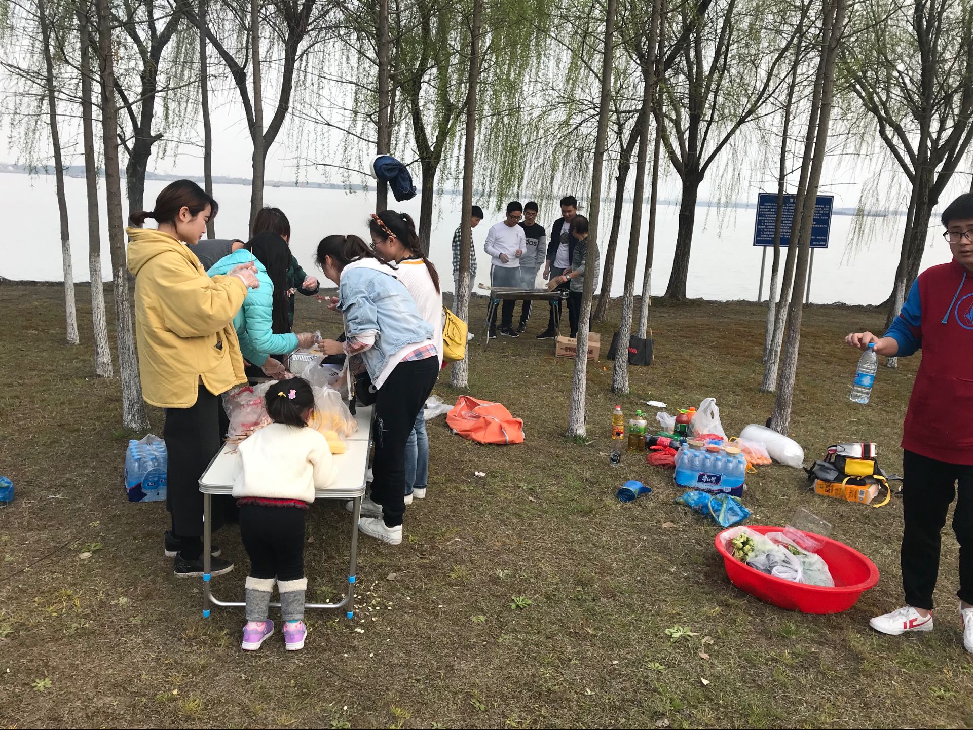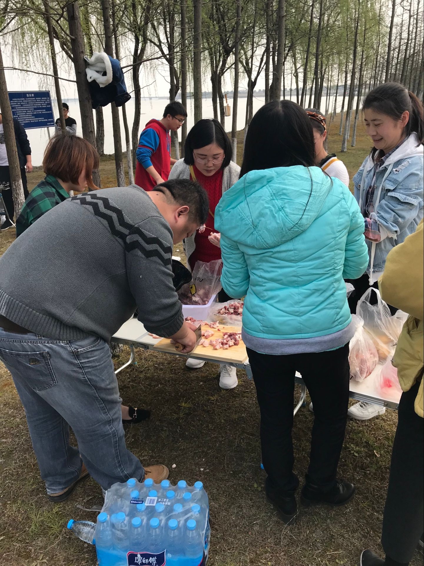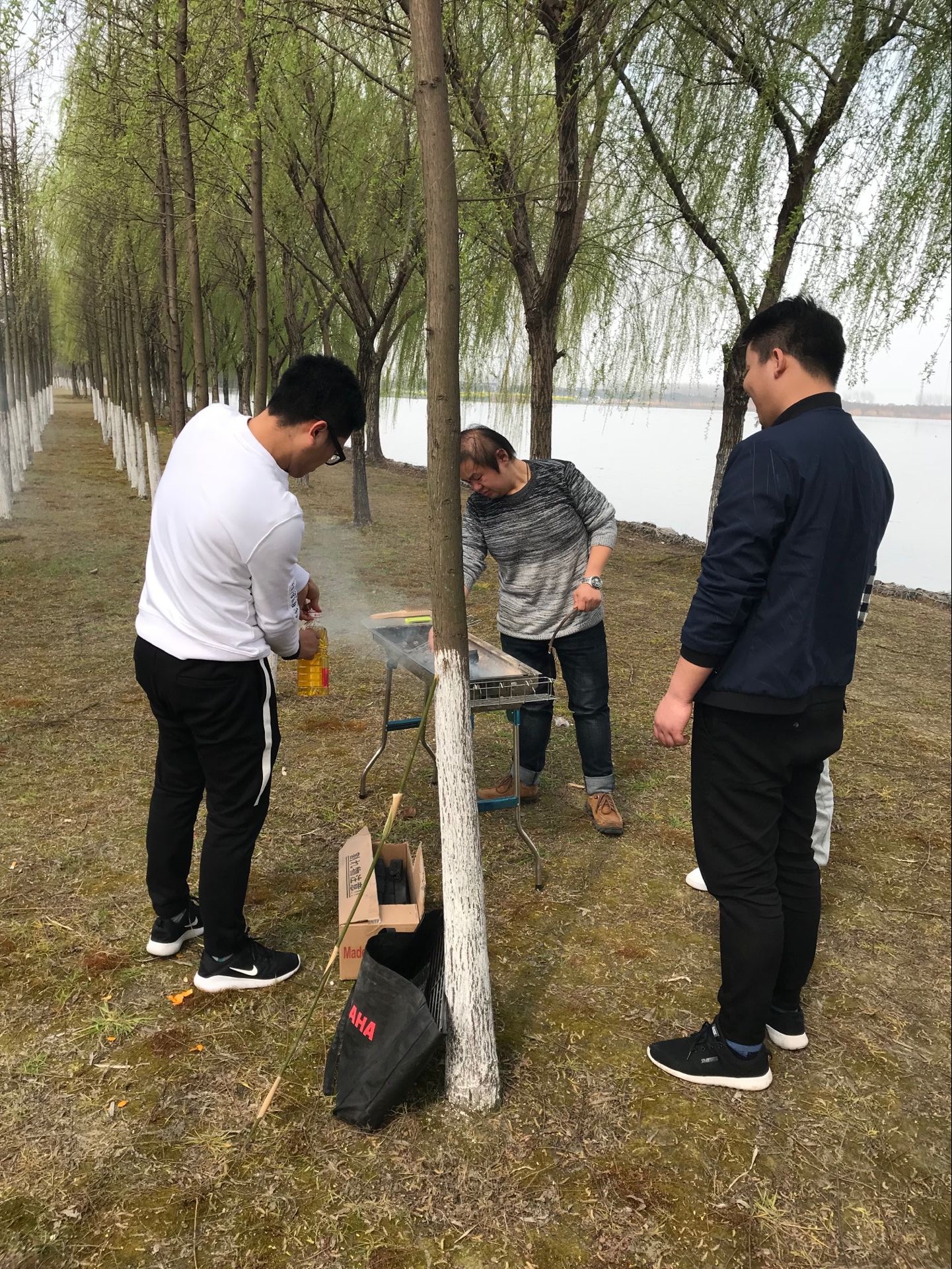 接下里就是驅(qū)車前往錦溪古鎮(zhèn),最終我們選擇了一塊相對安靜的水塘旁。點火的、穿肉串的,撿柴火的忙的不亦樂乎。這里面有個插曲,由于我們帶的酒精較少,導致碳一度無法點燃。點了一小時的碳,才發(fā)現(xiàn)這個碳是無火碳,其實已經(jīng)著了。。。