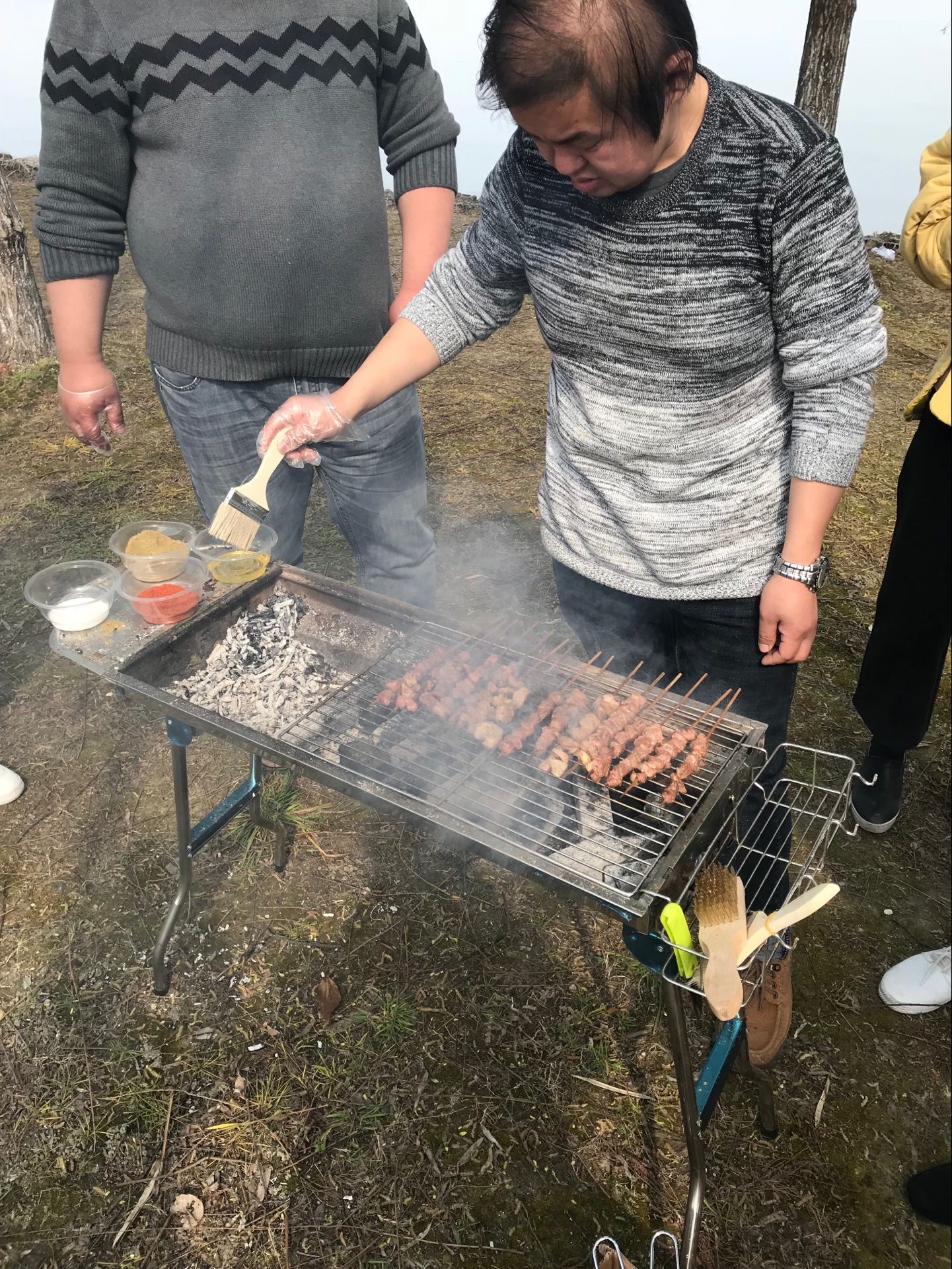 20人圍繞著這個不到1米長的爐子,吃的津津有味。不僅僅有燒烤,我們還有各類水果,堅果等食材。